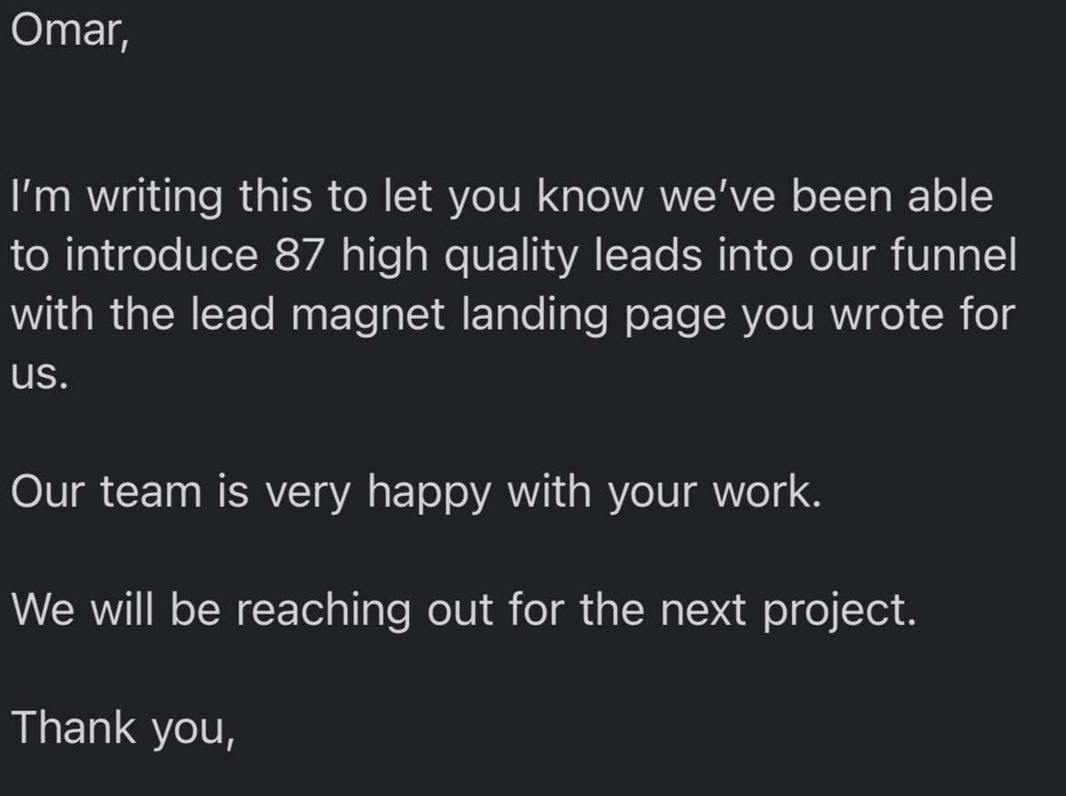"Omar really took the time to analyze the issues within our sales funnel. He made a proper sequence of emails and a sales letter with a clear CTA..."